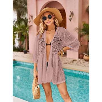 ZAFUL Kimonos for Women 3/4 Sleeve Loose Kimono Cardigan Open Front Beach Cover Up Pink XL