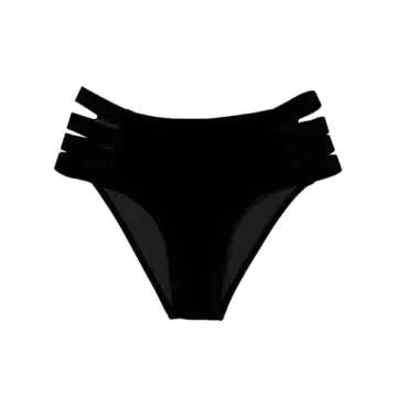 ZAFUL Women High Waist Bikini Bottom Side Mesh Spliced Tankini Swimsuit Swim Briefs Bathing Suit Bottom (3-Black,L)