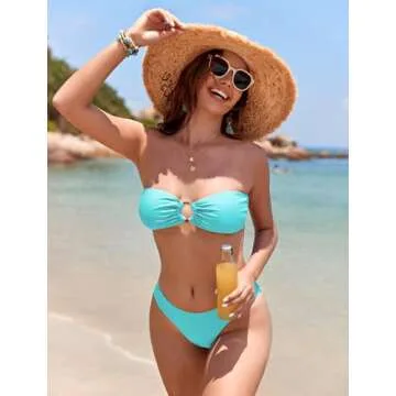 ZAFUL Women's Bandeau Bikini O Ring Strapless Tie Back High Cut Two Piece Swimsuit Bathing Suits (1-Blue, L)