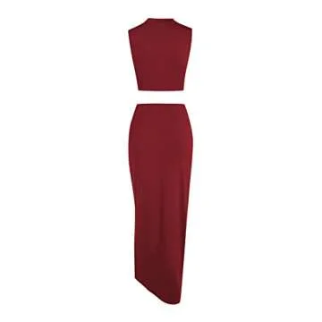 ZAFUL Women's Casual Sleeveless Summer Two Piece Outfits Solid Crop Top and Draped Ruched Maxi Skirt Set Solid Suiting (B-Wine Red, XL)