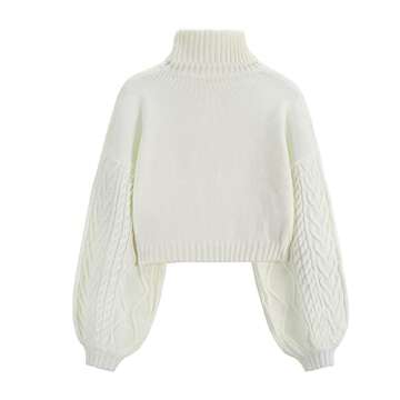 ZAFUL Women's Cropped Turtleneck Sweater with Lantern Sleeves