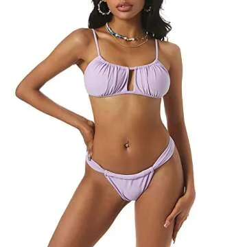Show moreIntroducing the ZAFUL Women's Elastic Strap Ruched Tie Front High Cut Bandeau Bikini Set, a perfect blend of style and functionality for your summer adventures. This stunning swimsuit in a calming Lavender Blue offers not only an eye-catching aesthetic but also superior comfort with its elastic straps and ruched detailing. The bandeau top features a tie front design, allowing you to adjust it based on your style preference while providing ample support. Additionally, the high cut bikini bottoms flatter your figure, enhancing your curves beautifully. Made from high-quality materials, this bikini set is designed to withstand both the sun and the waves, allowing you to enjoy every moment at the beach or pool with confidence.