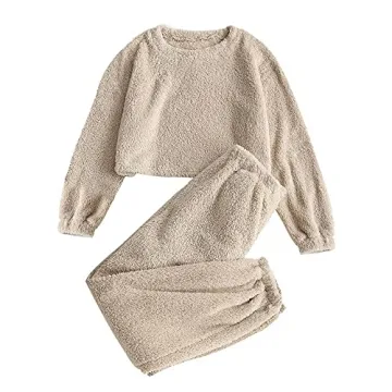 Wrap yourself in the ultimate comfort with ZAFUL Women's Fuzzy Lounge Casual Pajamas Sets. Crafted from a soft blend of cotton and polyester, this two-piece set includes a long sleeve fleece pullover and matching pants, designed for unparalleled coziness. The sherpa fleece material ensures warmth during the colder months, making it an ideal choice for fall, winter, and spring. The crewneck leisure top and drawstring sleepwear pants offer a relaxed fit, perfect for lounging at home or a good night's sleep....