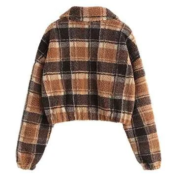 ZAFUL Women’s Half Zip Plain Sweatshirt Drop-shoulder Turndown Fluffy Pullover Crop Tops (Medium, Multi-A)