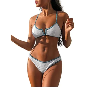 ZAFUL Women's High Cut Bikini Sets Ribbed V-Wire Cami Bikini Two Piece Swimsuit