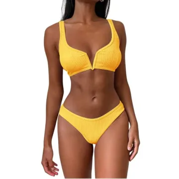Show moreExperience the perfect fusion of style, comfort, and functionality with the ZAFUL Women's High Cut Bikini Sets Ribbed V-Wire Cami Bikini Two Piece Swimsuit in eye-catching bright yellow. This vibrant swimsuit is meticulously crafted from high-quality, durable materials that promise a flattering fit for all body types. Whether you're indulging in poolside relaxation or diving into exhilarating ocean waves, this swimsuit effortlessly combines elegance and performance, making you feel confident during all your sun-soaked adventures.