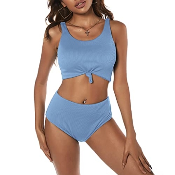 Show moreIntroducing the ZAFUL Women's Knot Textured Ribbed Scoop Neck Bikini Set, where fashion meets functionality in a stunning high-waisted design! This two-piece swimsuit is perfect for modern beach lovers, featuring a chic tank-style crop top complemented by a stylish knot front that enhances the solid bodice beautifully. Crafted from a premium blend of 85% Polyester and 15% Spandex, this bikini promises excellent elasticity and a comfortable fit that moves with you.