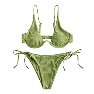 ZAFUL Women's Leopard Print Underwire High Cut Triangle Bikini Set Swimsuit (2-Green Snake, S)