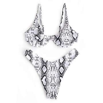 ZAFUL Women's Marble Print Underwire High Cut Push Up Bikini Set Swimsuit (B-Snake, S)