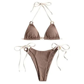 Show moreUnveil your confidence this summer with the ZAFUL Women's Ribbed O Ring Contrast Strap String Bikini Swimwear! Crafted from a luxurious blend of Polyester and Spandex, this bikini embodies comfort and elasticity, allowing you to move freely while sunbathing or swimming. The soft ribbed fabric is not only gentle against your skin but also lends an on-trend texture, drawing the eye. Featuring chic O ring details and adjustable spaghetti strap ties, this two-piece is designed to flatter your figure and elevate your beachwear game.
