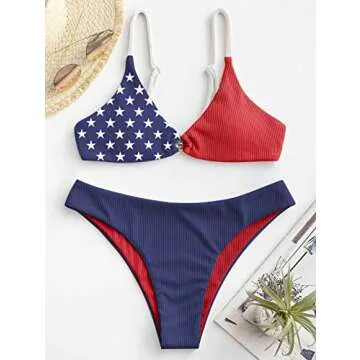 ZAFUL Women's Ribbed O-Ring String Bikini Swimsuit Cheeky Thong Swimwear Two Pieces Bathing Suit