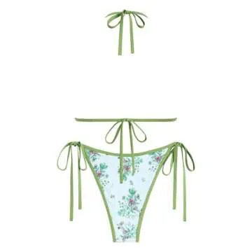 ZAFUL Women's Sexy Halter Bikini Sets Bowknot Tiny Floral Print Bikini Swimsuits Tie Side Triangle Bathing Suits (2-Light Green, M)