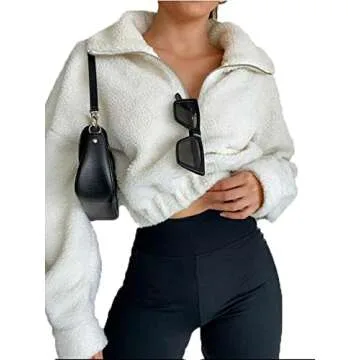 Show moreGet ready to flaunt your style while embracing comfort with the ZAFUL Women's Sherpa Pullover Faux Fur Half Zip Long Sleeve Crop Sweatshirt. Crafted from a premium blend of polyester and spandex, this cropped sweatshirt promises a soft, breathable experience, making it perfect for both athletic pursuits and leisurely days out. With its long sleeves and ribbed cuffs, this top not only keeps you warm but also adds a chic flair to your outfit. The unique stand collar style and elastic hemline complement the loose fit silhouette, providing the perfect balance of comfort and style. Choose from an array of different patterns, each thoughtfully sized to ensure you find your perfect fit—just be sure to check our size guide before ordering!