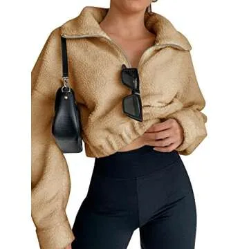 ZAFUL Women's Sherpa Pullover: Cozy Faux Fur Half Zip Crop Sweatshirt