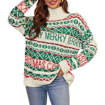 Show more This stunning Christmas sweater is not just a piece of clothing; it's a celebration of the festive spirit! Crafted from a luxurious blend of Viscose, Spandex, and Acrylic, the fabric is soft, breathable, and designed for ultimate comfort during the winter months. With its warm turtleneck and casual fit, this sweater keeps you cozy while allowing for easy layering. This adorable sweater showcases a charming Merry Christmas print complemented by delightful snowflakes that add a seasonal touch.
