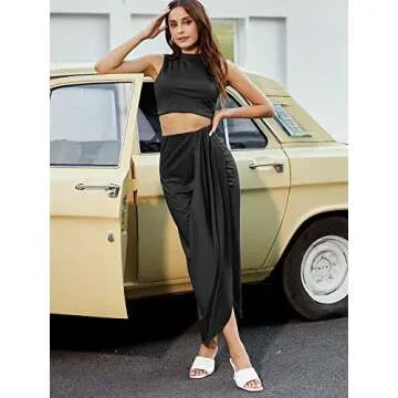 Show moreIntroducing the ZAFUL Women's Solid Marled Crop Top and Draped Ruched Maxi Skirt Set – a chic two-piece ensemble designed for the modern woman who values both style and comfort. This stylish outfit boasts a captivating frontal ruched design that highlights your curves while offering a luxurious feel against your skin. Made with breathable fabric, this set ensures you stay comfortable, whether you are attending a glamorous evening event or enjoying a day out with friends. The elegant side-slit skirt adds a hint of flirtation, making it an eye-catching choice for any occasion.