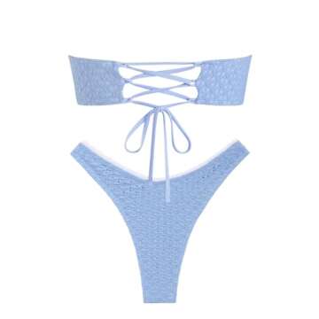 ZAFUL Women's Strapless Bikini Top Openwork Textured Bow Ruched Lace Up Bandeau Tops Swimsuit Bathing Suit Tube Top(Light Blue, S)