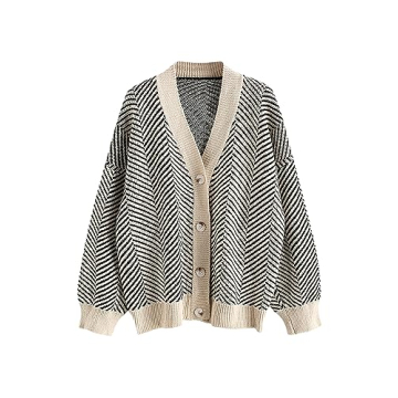 ZAFUL Women's Striped Cardigan Long Sleeve Button Up Open Front Knit Oversized Sweater (0-Stripes)