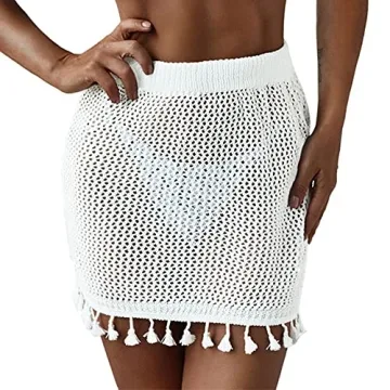 Show moreIntroducing the ZAFUL Women's Swimsuit Cover Up Crochet Sheer Short Beach Skirt with Tassels, a must-have addition to your summer wardrobe! This delightful beach skirt is made from lightweight polyester, ensuring maximum breathability and comfort during those hot sunny days. Expertly designed with a stylish tassel finished edge, it offers a playful twist that compliments any two-piece bikini effortlessly. With its chic mini length and high waist, this cover-up provides the perfect balance of coverage and allure, accentuating your beautiful silhouette while still keeping it chic and fun.