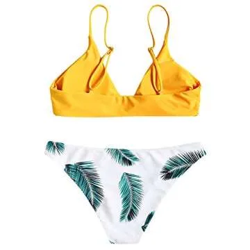 Show more Introducing the striking ZAFUL Women's Swimsuit, a vibrant and stylish bikini set that marries comfort with modern design. Crafted from high-quality materials, the swimsuit features a captivating leaf print that adds a tropical flair to your beach attire. The padded cups provide support and enhance your natural silhouette, while the adjustable straps ensure a perfect fit tailored just for you. Whether you're lounging by the pool or playing beach volleyball, this bikini is designed to move with you, guaranteeing both style and functionality for all your summer adventures.
