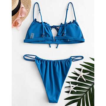 ZAFUL Women's Tie Cutout Keyhole Cami String Bikini Set Two Piece Swimsuit (Solid-Ocean Blue, S)