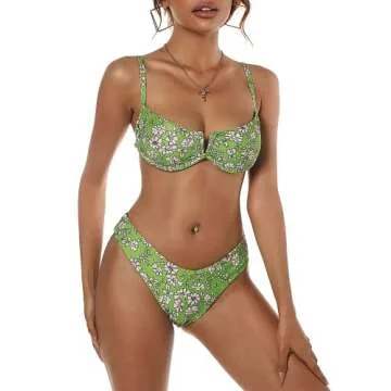 ZAFUL Women's Underwire Bikini Floral V-Wired High Leg Two Piece Bikini Set Swimsuit (5-Multia, S)