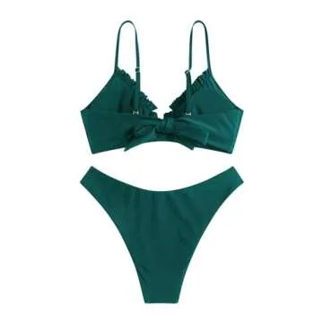 ZAFUL Women's Underwire Bikini High Cut Bikini Set V-Wired Two Piece Swimsuit Bathing Suit(1-Malachite Green, M)