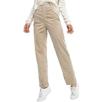 ZAFUL Women's Vintage Corduroy Pants High Waisted Straight Leg Pants Pockets Trousers (1-Light Khaki, M)