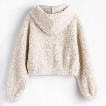 ZAFUL Women's Zip Up Faux Shearling Fluffy Oversized Hooded Teddy Jacket Coat (0-Milk White, S)
