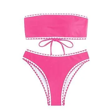 Available in an array of vibrant colors including the playful Pink Teeth, this bikini is perfect for making a splash at any pool party or beach gathering. The padded bra offers additional support while allowing for adjustable customization with the lace-up design in the back. With its stylish simplicity, the ZAFUL bandeau bikini is sure to be a crowd-pleaser!