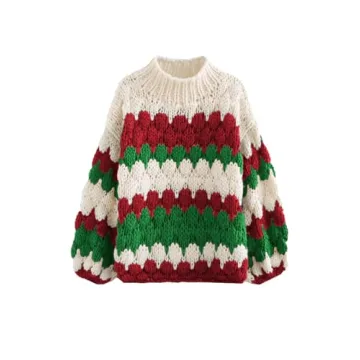 Show more Introducing the ZAFUL Women’s Cute Sweater 2024, your ultimate cozy companion this season! Crafted from soft cable knit fabric, this pullover sweater is designed for those who crave a blend of comfort and style. With a loose, stretchy fit, it ensures maximum comfort while keeping you fashionable. The wide-striped color block design in vibrant red and green not only uplifts your winter wardrobe but also brings a jolly spirit perfect for the holidays. You’ll love how the balloon long sleeves and ribbed cuffs provide a flattering silhouette that suits a variety of body types, making it a versatile piece for your collection.