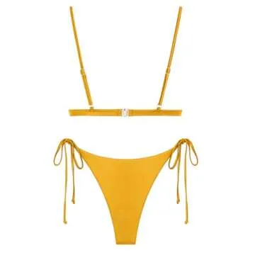 ZAFUL Women's Silky Shiny String Bikini Sets - Sexy Two Piece Swimsuit in Yellow M