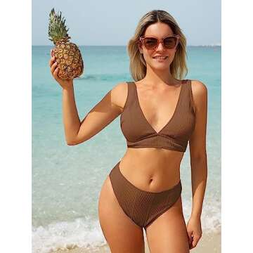 Show more Experience the ultimate blend of style and comfort with the **ZAFUL Womens V Neck Bikini Set**. Crafted with soft, stretchy, and breathable fabric, this bikini set promises comfort against the skin while enhancing your summer vibes. The standout feature is its unique textured crinkle design that adds a playful touch to your beach wardrobe. The deep V-neck plunge and removable push-up padded cups offer adjustable support and a sexy silhouette for those sun-kissed days by the shore. Perfectly tailored for a classic look, this two-piece set includes a cheeky high-waisted bikini bottom that effortlessly hides your tummy and accentuates your curves, ensuring you feel both confident and chic throughout your beach adventures.