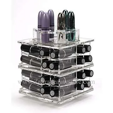 Show moreIntroducing the ZAHRA BEAUTY Mini Spinning Lipstick Tower – the perfect blend of elegance and functionality for every beauty lover. Measuring at a compact size of 5.35'' H x 5.35'' L x 6'' W, this chic acrylic lipstick holder features a stunning design that not only organizes but also beautifies your vanity space. The unique spinning feature allows you to access your favorite lipsticks easily and quickly, making it the ultimate accessory for any makeup enthusiast. Store up to 38 lipsticks in this stylish tower, ensuring that your collection stays organized and visually appealing.