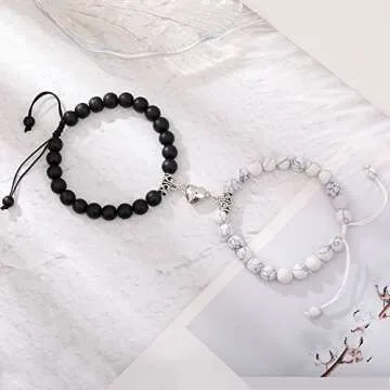 Show moreIntroducing the ZAHSY Relationship Gifts for Couples Bracelets, a perfect blend of style and sentimentality designed for both lovers and friends. These stunning matching bracelets come in elegant black and white designs, representing the yin and yang of enduring love and friendship. Crafted with a thoughtful touch, they attract each other when in close proximity, symbolizing the beautiful connection between partners, friends, or family members. Whether celebrating a birthday, an anniversary, or simply expressing appreciation, these bracelets are the ultimate gift choice for anyone who cherishes those special bonds. Ideal for couples, best friends, siblings, or parent-child pairs, this jewelry piece is more than just an accessory—it's a heartfelt statement of connection.