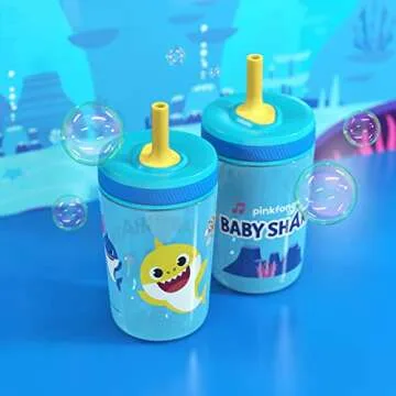 Show more Introducing the ZAK Designs 15oz Baby Shark Kelso Tumbler Set, a delightful duo of tumblers perfect for little ones who love the underwater world of Baby Shark! Each tumbler features a vibrant design that captures the essence of fun while making hydration a breeze for your child. With a generous capacity of 15 ounces and a durable construction, these tumblers are designed to withstand the daily adventures of any toddler. Made from high-quality, BPA-free plastic and equipped with soft silicone straws, these tumblers not only keep drinks in but also avoid messes and spills.