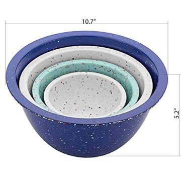 The mixing bowl set includes four sizes: 4 quarts, 2.5 quarts, 1.25 quarts, and 18 ounces.