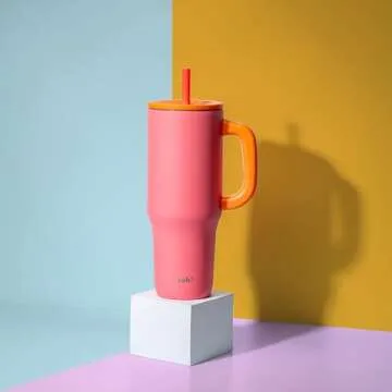 Zak Designs Sutton Travel Tumbler for On the Go, 40oz Stainless Steel with Vacuum Insulation, Silicone Straw, and Carry Handle for Cold Drinks (So Sweet Pink)
