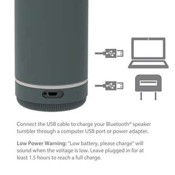 The secure leak-proof cap and carrying loop make it easy to grab and go. With a quick recharge time of just 1.5 hours via the included micro USB cable, you can spend more time enjoying and less time waiting around. The easy-to-clean design is both practical and convenient; hand wash the bottle and simply wipe the speaker with a damp cloth to maintain its appealing aesthetic.