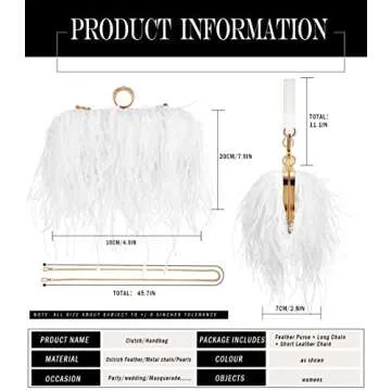 Zakia Real Natural Ostrich Feather Evening Clutch Shoulder Bag Party Bag (A-White)