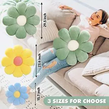 Show moreIntroducing the charming ZAKUN Flower Pillow, a delightful addition to your home decor that beautifully combines style, comfort, and inspiration from nature. Measuring at 15.7 inches across, this adorable green daisy-shaped pillow is crafted from high-quality short plush fabric, ensuring a soft and cozy touch while being skin-friendly and durable. Filled with fluffy PP cotton, it offers remarkable resilience, making it the perfect choice for both decorative and functional uses. Whether you want a comfortable seat cushion or a chic floor pillow, this product caters to your desires with a flair of floral elegance that's bound to brighten up any room.
