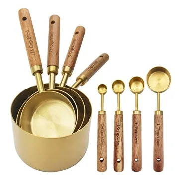 Show more Introducing the exquisite Gold Measuring Cups and Spoons Set by Zalaxt, a perfect blend of functionality and elegance for your kitchen needs. Crafted from high-quality food-grade stainless steel, this set features a stunning gold finish that adds a touch of glamour to any kitchen decor. Each piece is thoughtfully designed for durability and accuracy, ensuring that you have the best tools at your disposal for all your culinary adventures. Elevate your cooking with a set that combines sophistication and practicality.