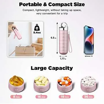 With its upgraded large capacity, this organizer boasts 7 spacious compartments that can accommodate a substantial amount of medication—up to 8 fish oils or 10 large vitamins per compartment. Ideal for week-long trips or daily use, it helps you stay organized without the fear of running out. The lightweight and portable design allows you to slip it easily into your purse or backpack, making it the perfect companion for eager travelers and busy commuters alike.