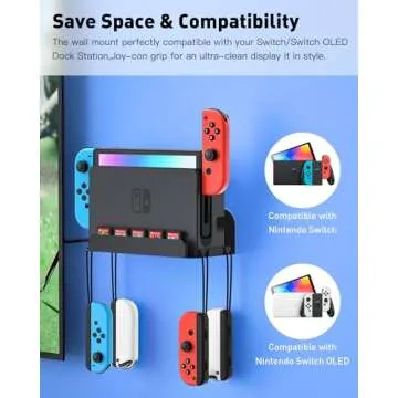 The wall mount is designed with 5 game card slots and 4 T-shaped Joy con hooks, maximizing your display and storage options. No more rummaging through boxes for your favorite games - simply place them within easy reach. This innovative organization feature not only keeps your gaming gear tidy but also adds a stylish touch to your room.