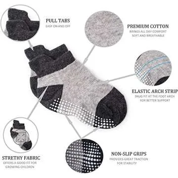 Zaples Baby Non Slip Grip Ankle Socks with Non Skid Soles for Infants Toddlers Kids Boys Girls