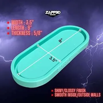 Zapp3D Design Pill Oval Tray Silicone Mold is the perfect tool for your next DIY project, measuring an ideal 9 x 3.5 inches and 5/8 inches thick. Crafted with high-quality platinum silicone Shore 15A material, this durable mold guarantees exceptional craftsmanship. Enjoy a smooth and glossy finish that will elevate your resin creations, making this mold a must-have for artisans and hobbyists alike. With its sturdy, solid back design, flat surfaces are assured, preventing bowing or deformations...