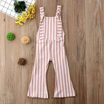 Show moreMeet the ZAXARRA Toddler Baby Girl Stripes Bell-Bottom Jumpsuit Romper Overalls, a perfect blend of style and comfort for your little one! This fashionable outfit is designed with playful vertical stripes that bring an element of chic to any occasion. Designed for ages 4-5 years, it's not just about aesthetics; the romper features adjustable cross back straps that ensure a snug fit, while the long, wide bell-bottom legs elevate the outfit to something truly special. Made from breathable, soft, and lightweight material, this jumpsuit is not only skin-friendly but incredibly durable, making it perfect for your active toddler’s lifestyle.