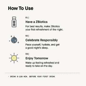 For best results, consume ZBiotics right before you start drinking alcohol.