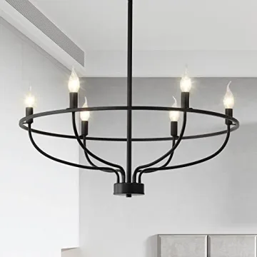 ZBMYRBZJ Modern Farmhouse Rustic Industrial Candle Chandelier (Black-6)