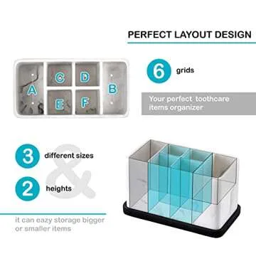 Discover the ultimate solution for keeping your bathroom organized with the Large Electric Toothbrush Holder from ZCCZ. This stylish and functional toothbrush holder features 6 spacious storage compartments, designed to accommodate not only your toothbrushes and toothpaste but also dental floss, razors, combs, shavers, eyebrow trimmers, makeup brushes, and more. Crafted with meticulous attention to detail, this toothbrush holder combines practical use with visual appeal.